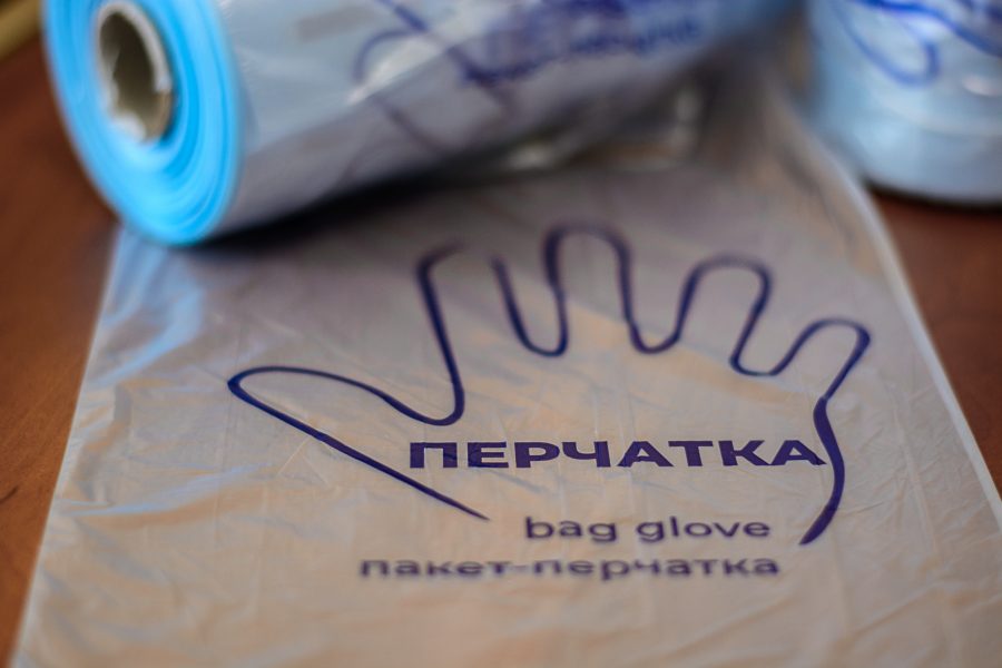 One-use polyethylene bags-gloves are a reliable protection of hands from external bacterias.