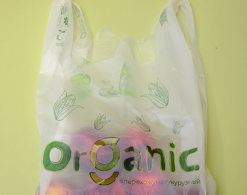 Made of corn starch, organic bags are a great alternative to accustomed polyethylene. They are solid, stretchy, nice to the feel, degrade to nothing by composting.